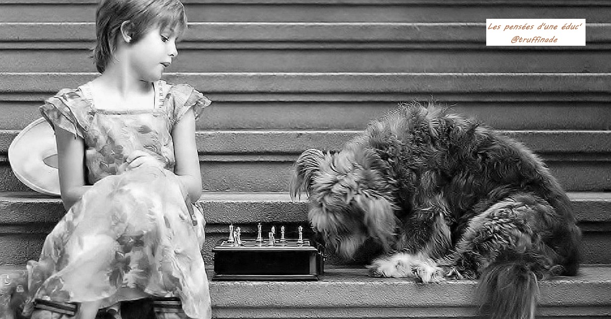 Maintenant je vais vous proposer de remplacer les mots « exercice d’apprentissage canins par le mot « jeu » ! Quand on y réfléchit, c’est l’humain qui met une émotion, une couleur, une envie plus qu’une autre sur un apprentissage. Apprendre à revenir près de son humain ou s’assoir au passage clouté, c’est comme apprendre à passer entre ses jambes ou à donner la patte : le chien interagit avec son humain, le chien réfléchit, il propose et il est récompensé ou non en fonction de ses réactions proposées.